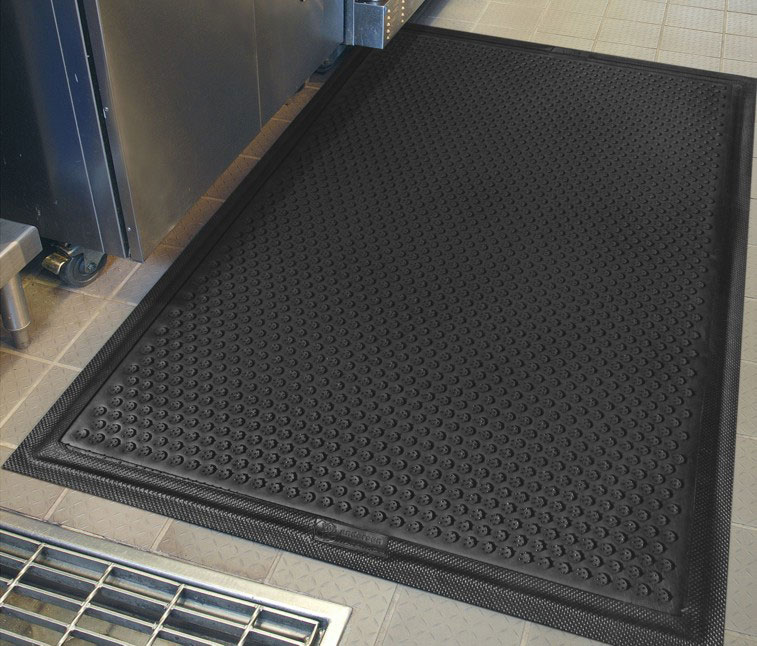 • On a regular basis, anti-fatigue mats should be cleaned with water-based cleaners to remove oil and grease where needed. We do not recommend the use of solvent-based cleaners. It is important to use cleaners strong enough with proper agitation to remove fats and other food related oils. Research has shown that even grease-proof rubber can be affected by grease and oil if the grease and oil are allowed to remain in contact with the mat for extended periods of time.
