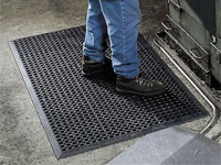 Floor Mats are used throughout facilities in numerous capacities. Entrance Mats are the most effective way of stopping dirt and moisture at the door and keeping building maintenance costs to a minium. Where safety is a must, Anti-Fatigue & Cushion Mats fit the need for employee awareness as well as their health and well being. Custom Logo Mats & Message Mats are also an excellent way to project a positive company image or conveying messages to employees or customers.
